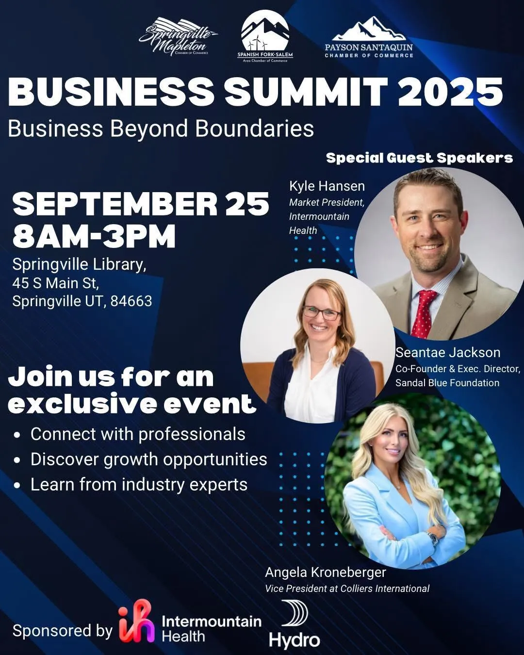 Join us at the 2025 South County Business Summit—a day of visionary speakers, insightful workshops, and powerful connections across Southern Utah’s business community. Let’s learn, collaborate, and grow together!